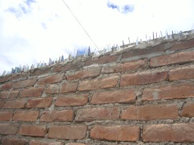 auf den meisten mauern sind glassplitter befaestigt, aus angst vor einbrechern..