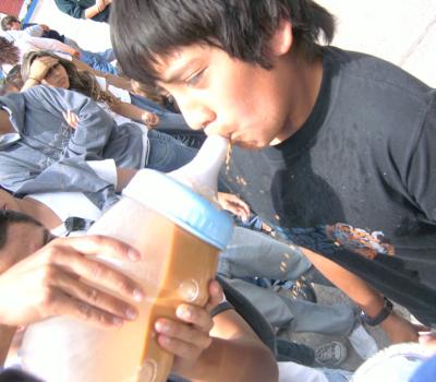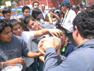 die grossen weihen die kleinen ein und das mit einem ekeligen getraenk. jeder von den erstklaessnern muss einmal aus dieser falsche trinken. ich habe es nicht probiert, aber es scheint wohl echt ekelig zu sein und wer durfte die armen fuettern?! WIR!