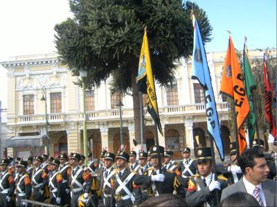 heute haben der fuenfte jahrgang und wir austauschschueler uns eine praesentation der armee angeguckt. das heisst viele wichtige leute haben geredet und die soldaten sind maschiert, es wurden diverse hymnen gesungen, etc alles zu ehren der fahne...